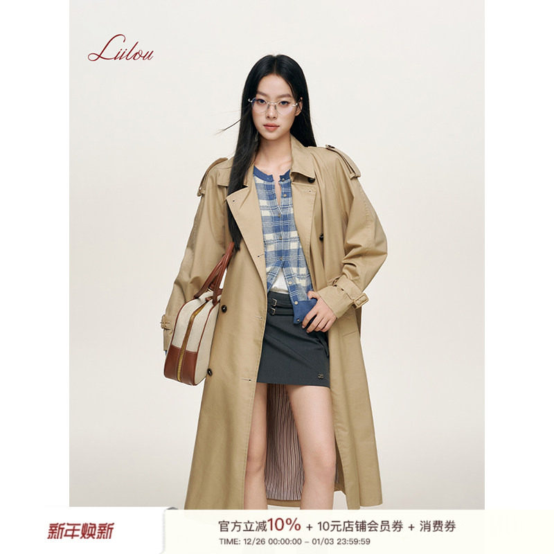 林允黄灿灿同款Liilou 莱赛尔可拆卸肩章双排扣中长款风衣外套
