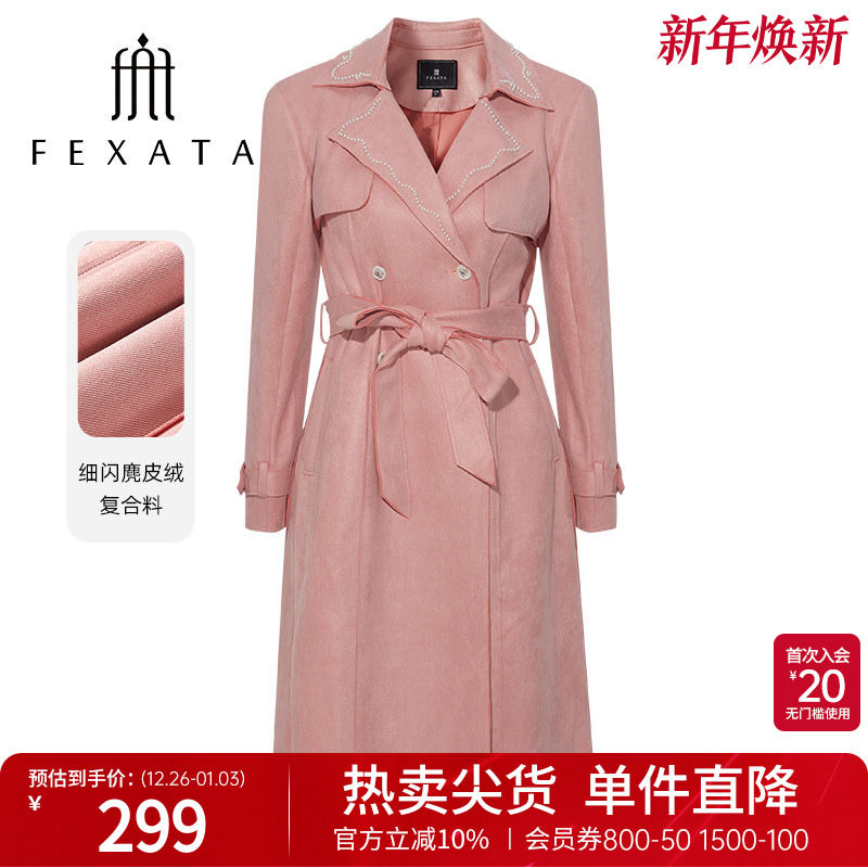 FEXATA斐格思2024新款秋冬时髦都市复古双排扣中长款风衣外套