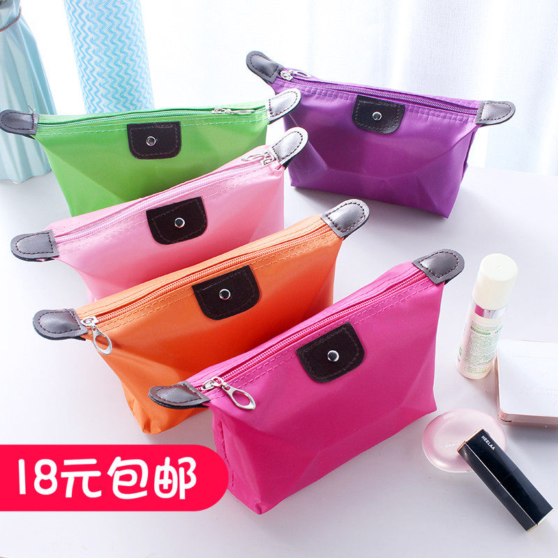 韩版水饺形可爱糖果色便携化妆包旅行收纳包中包洗漱包女士手拿包