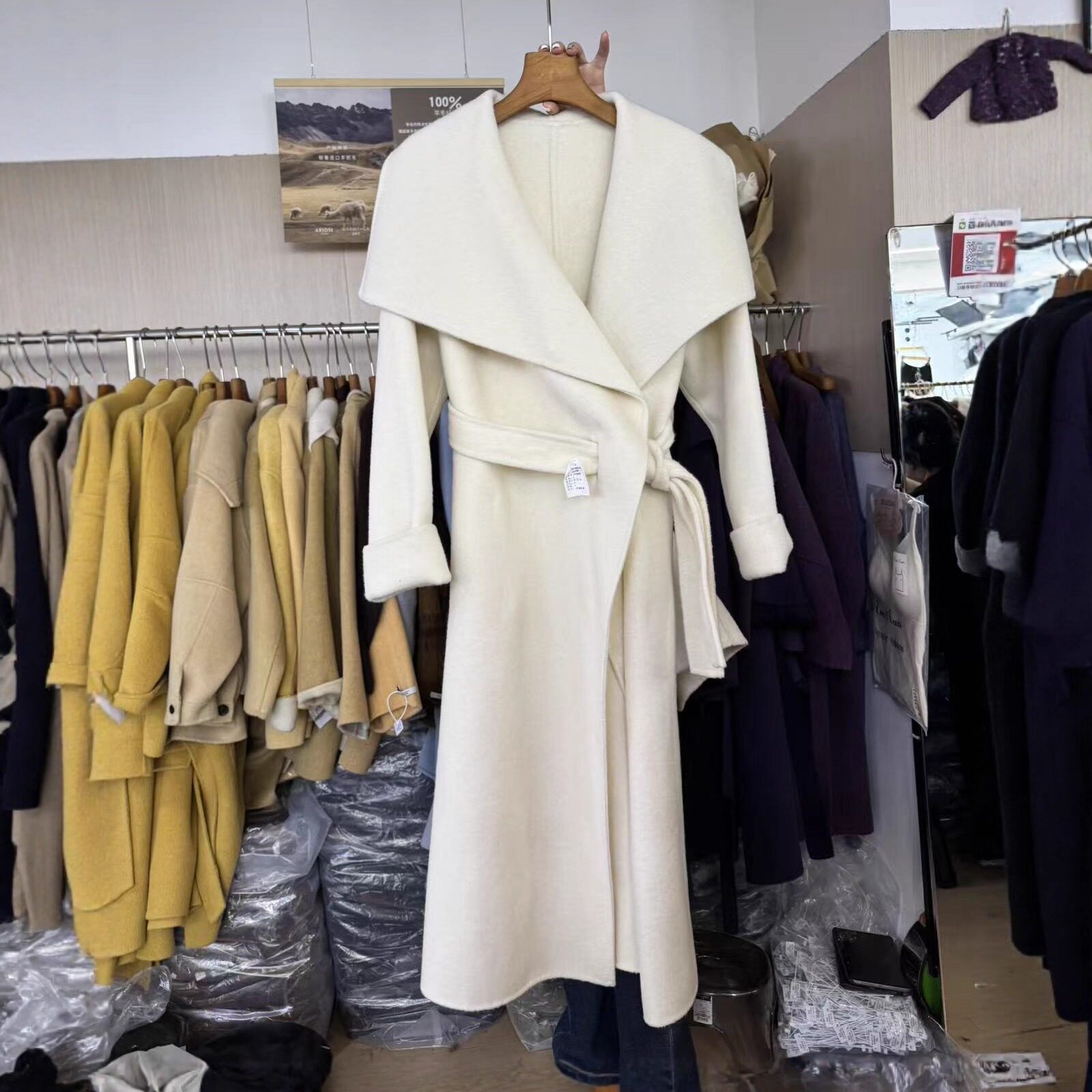 - 双面羊绒女大衣款中长