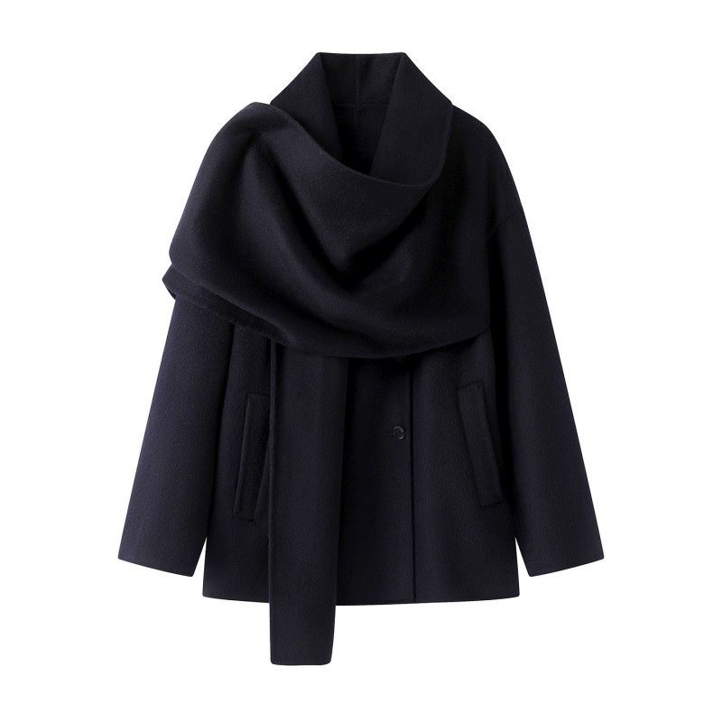 COVERINS可拆卸围巾羊毛羊绒大衣外套女中款2025冬新款CC35510070