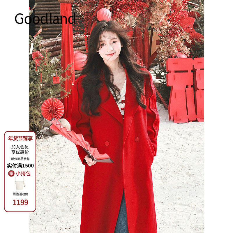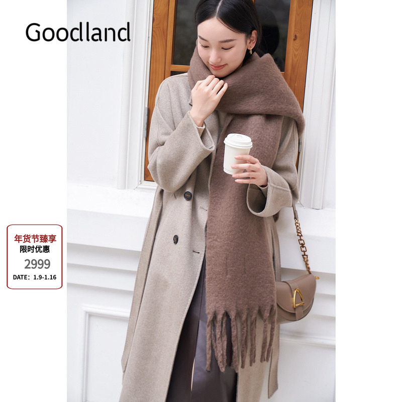 Goodland美地法式气质翻领羊毛羊绒大衣外套女长款LC34580170/1