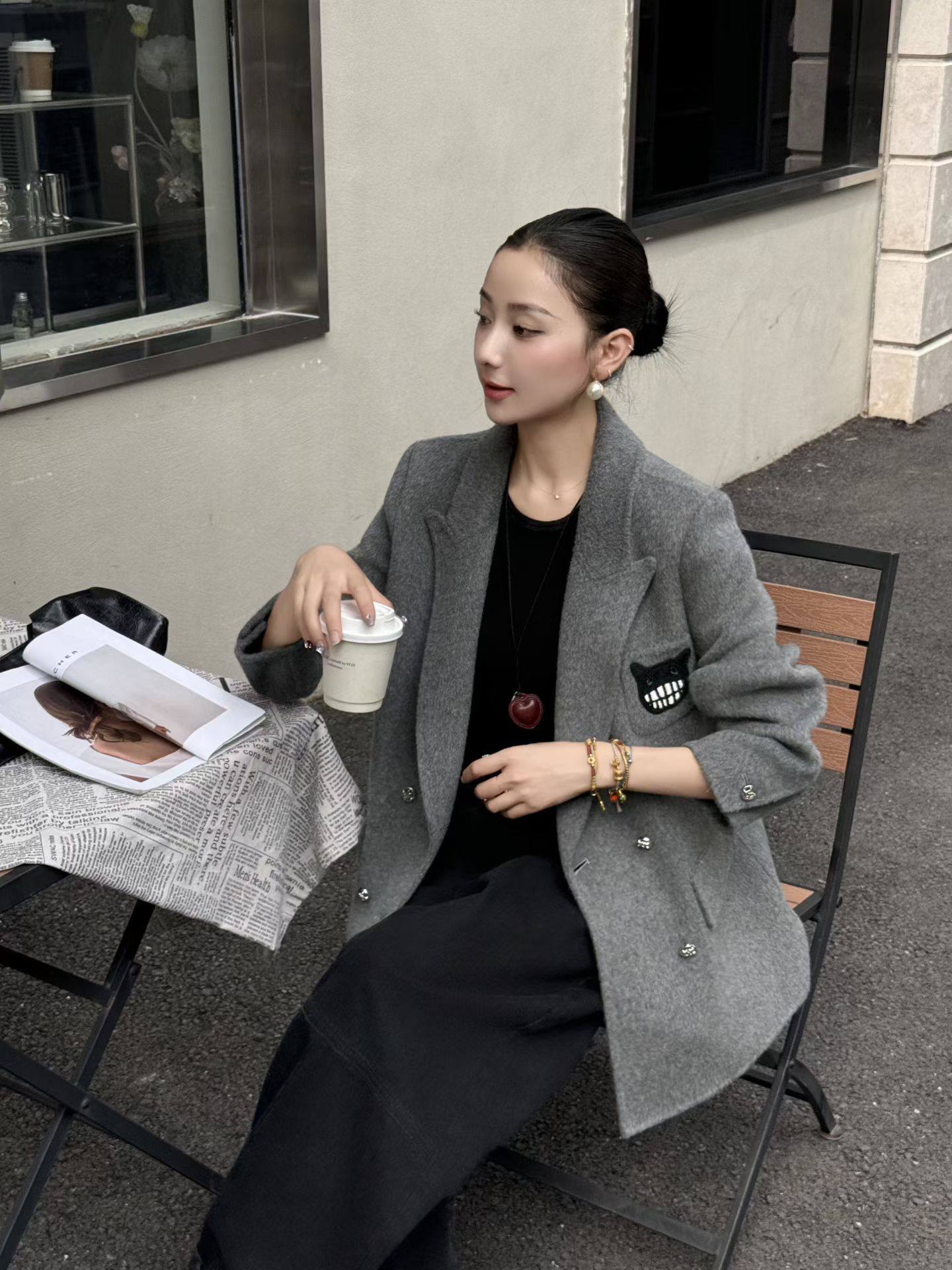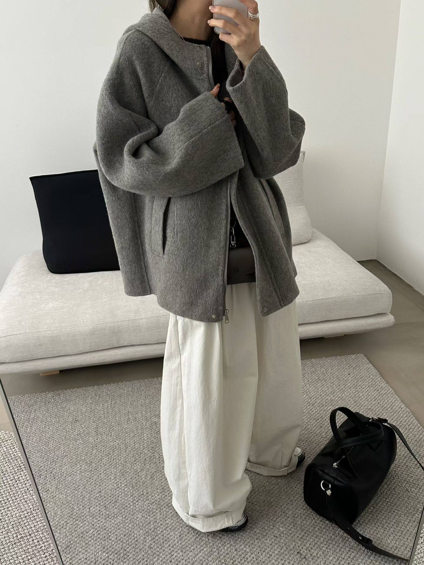 - 黑色大衣茧型