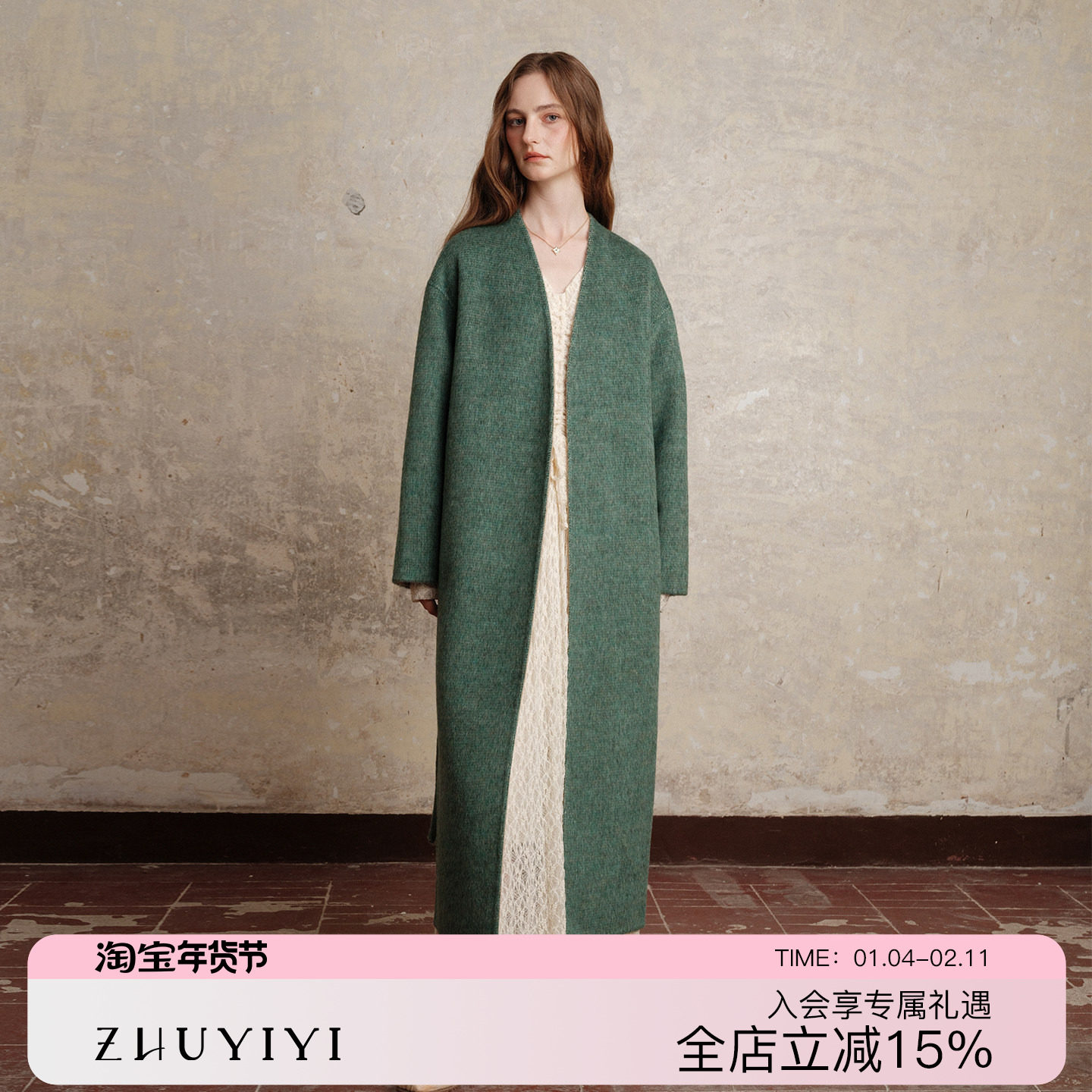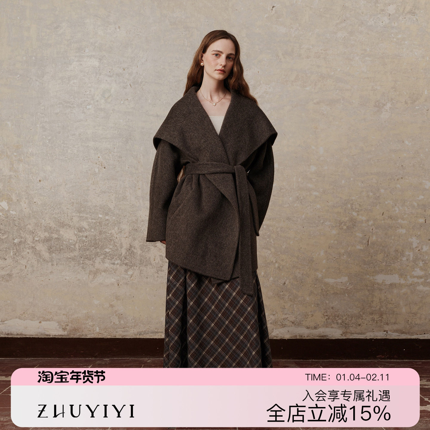 ZHUYIYI 新款羊绒大衣外套女小个子修身显瘦高级感中长款原创设计