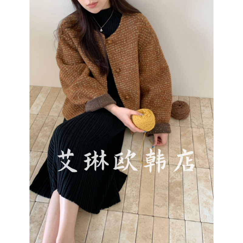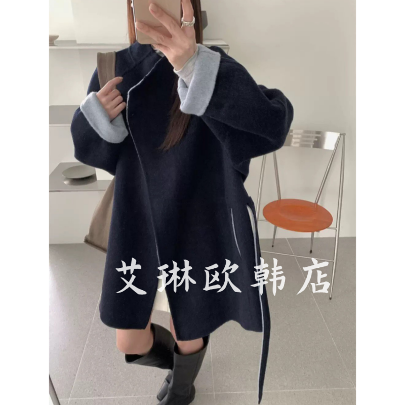 9.28~10212秋冬新款复古撞色小香风绵羊毛双面羊绒大衣外套女