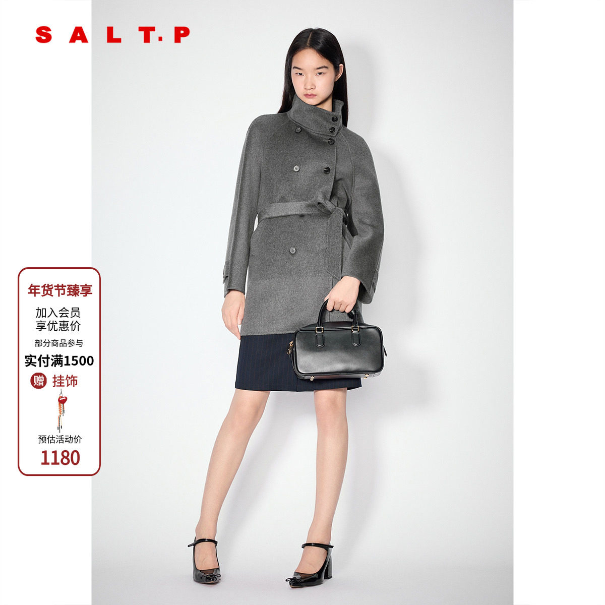 SALT.P可颜双排扣立领羊毛羊绒大衣外套女一手长AC35380020