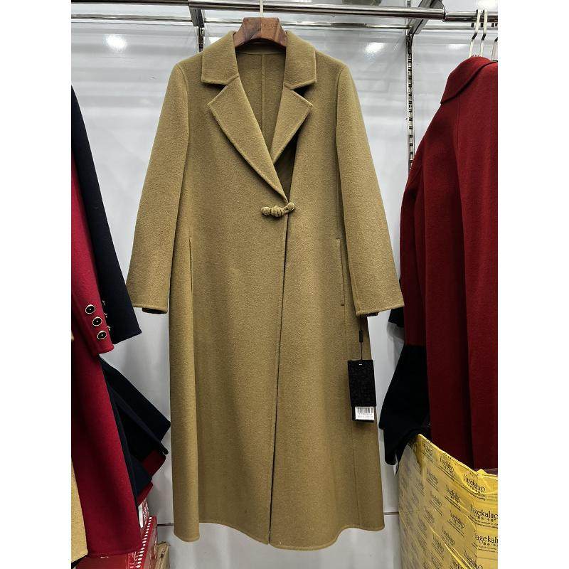 浒城古娘新款重工刺绣气质长款中式国风双面呢羊绒大衣外套女春秋