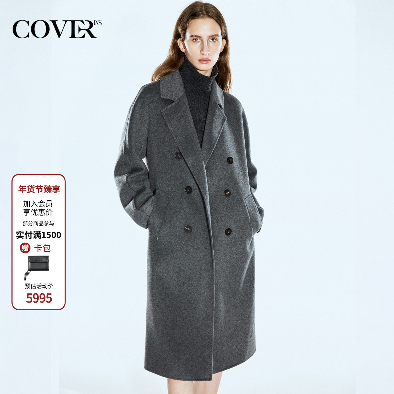 COVERINS灰色100山羊绒大衣外套女冬季CC35580030
