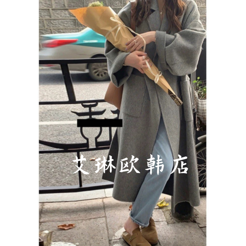 韩国东大门订单!ins高级 100%羊毛双面羊绒大衣外套女秋冬