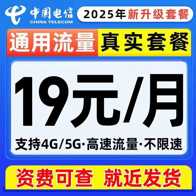 电信流量卡纯流量上网卡全国通用电信星卡4G5G手机电话卡无线流量