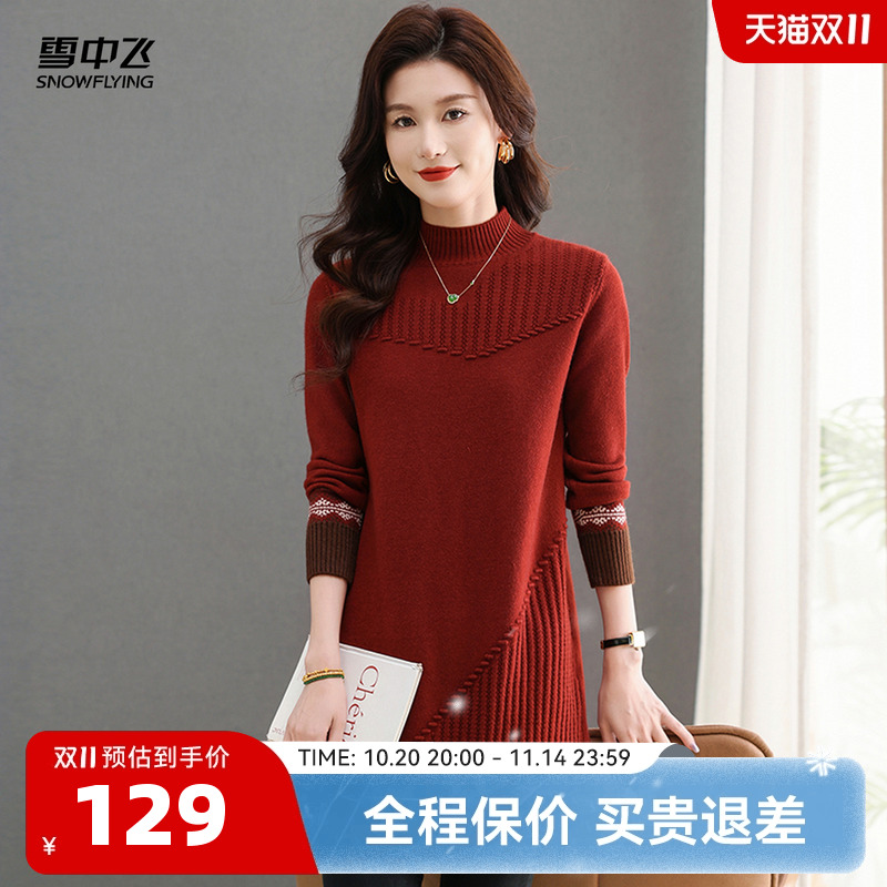 雪中飞25秋新款女士中长款厚毛衣针织打底上衣保暖舒适连衣裙W