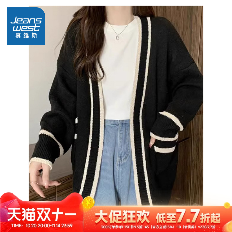 KP真维斯女装秋冬季新款毛衫女式小香风宽松中长厚款长袖针织开衫