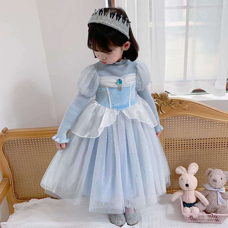 正版冰雪奇缘爱莎公主裙女童秋冬季艾莎毛衣裙子儿童礼服蓬蓬纱裙