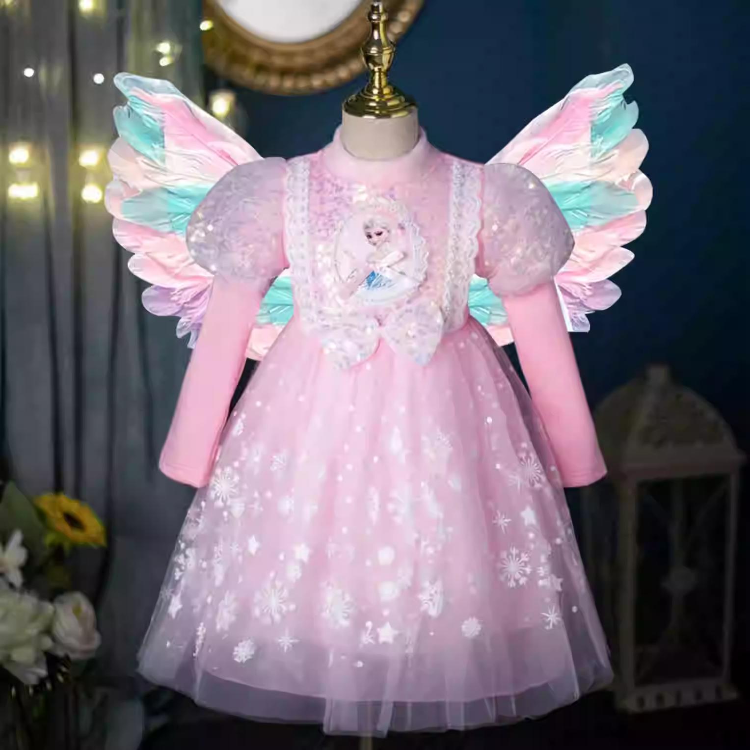 女童加绒连衣裙爱莎公主裙秋冬新款艾沙儿童宝宝翅膀裙子2024冬季