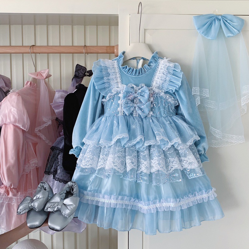 sesameclub苏菲亚公主裙女童秋冬季加绒加厚冰雪奇缘生日爱莎裙子