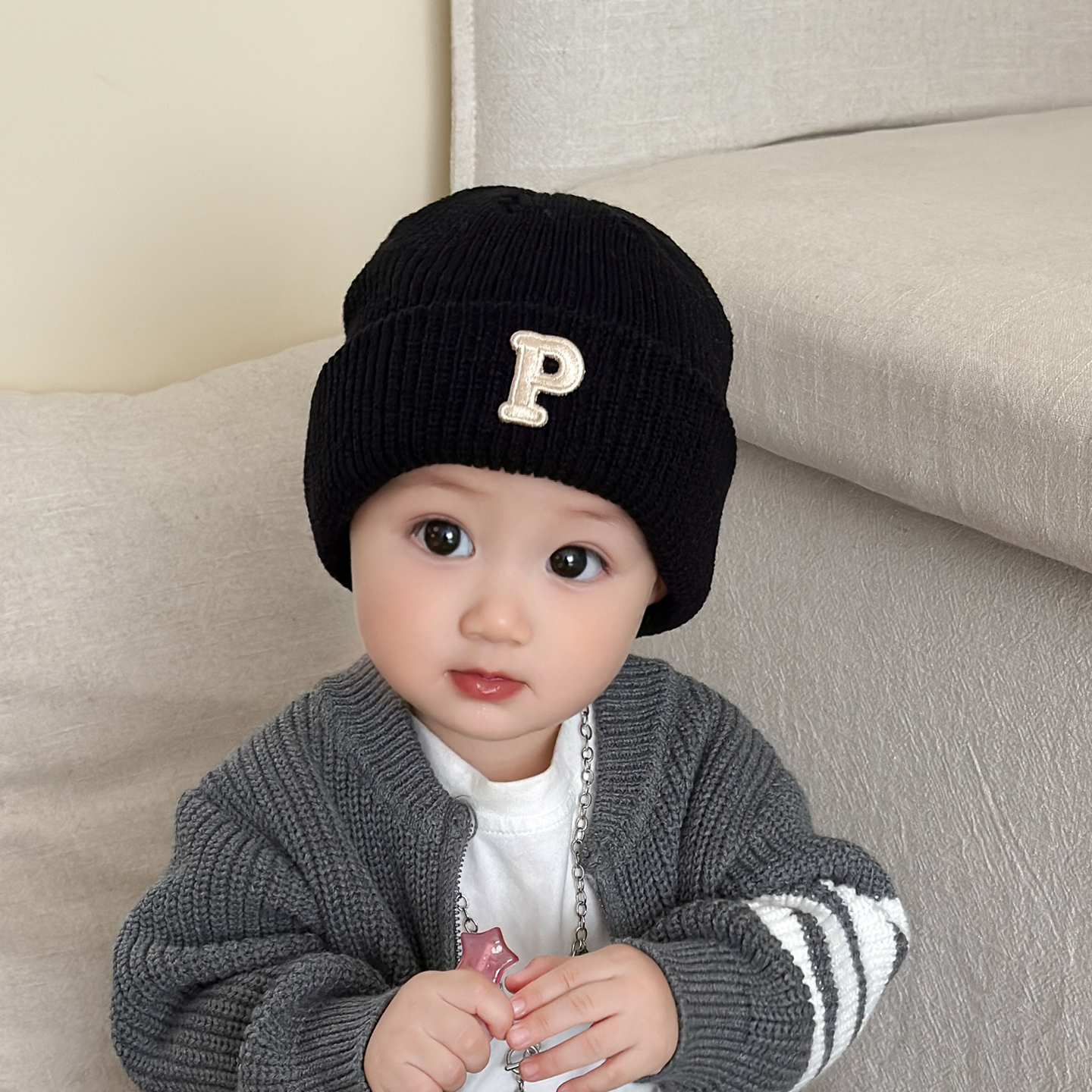 韩国婴儿帽子秋冬季洋气字母宝宝针织帽保暖套头帽潮男女童毛线帽