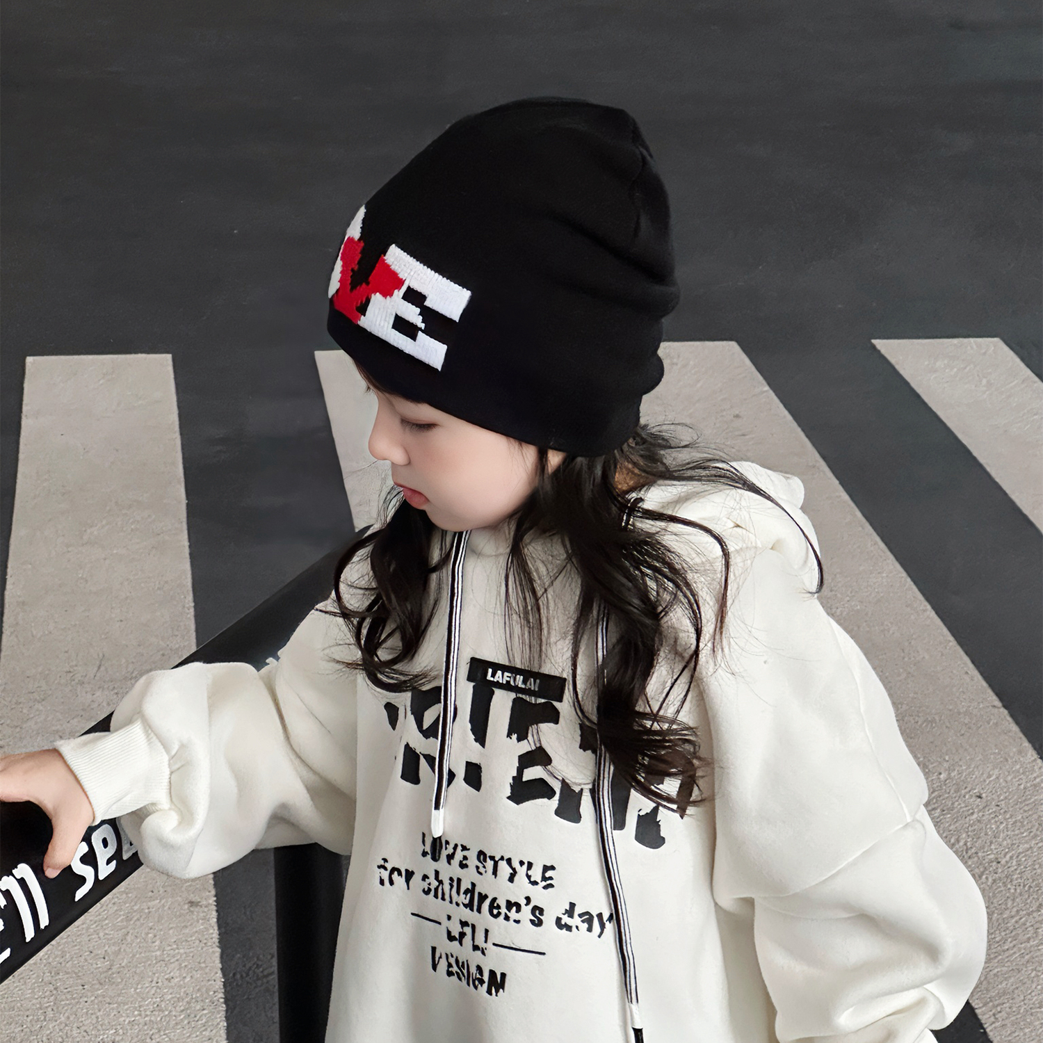 韩国儿童毛线帽洋气贴标百搭针织瓜皮帽秋冬男女童宝宝护耳帽子潮