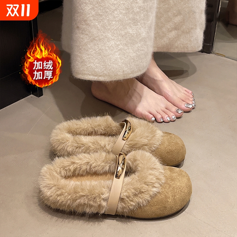 2025新款包头半拖鞋女外穿秋冬皮毛一体雪地靴一脚蹬平底毛毛拖鞋