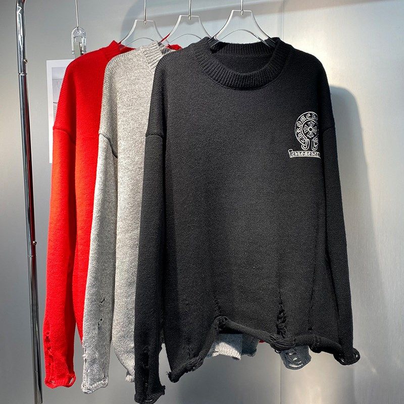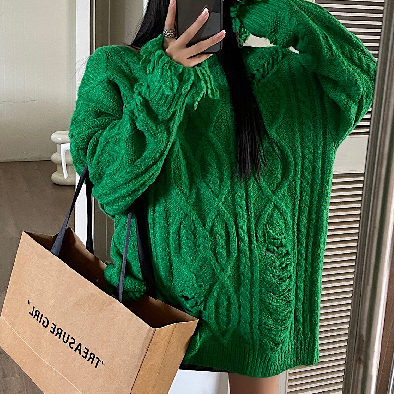 破洞流苏毛衣套头女冬季韩版十字架字母针织衫宽松慵懒风外穿上衣