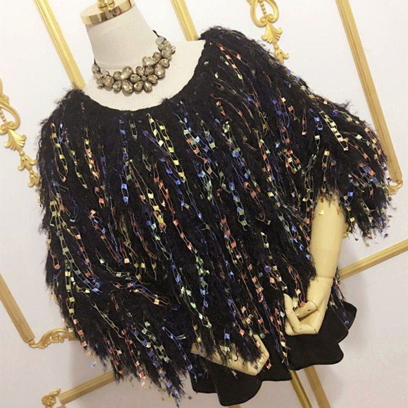 流苏圆领毛衣宽松中长款秋冬套头披肩秋冬外套女装针织衫韩版新款