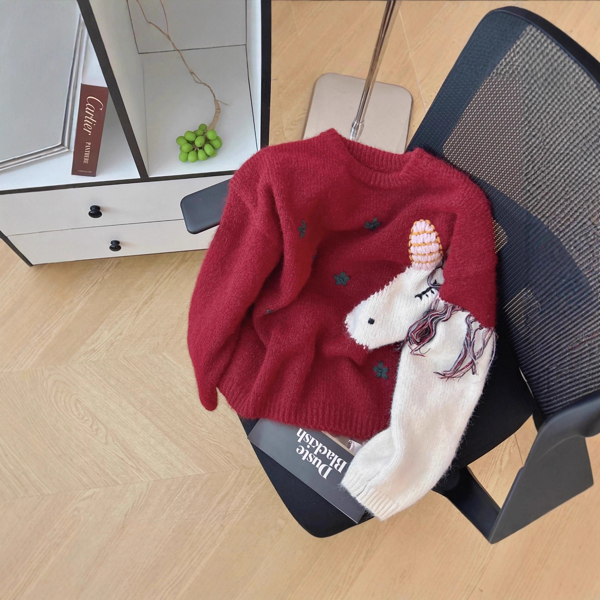 复古卡通重工流苏套头毛衣女2025秋冬新款韩版宽松慵懒风针织上衣