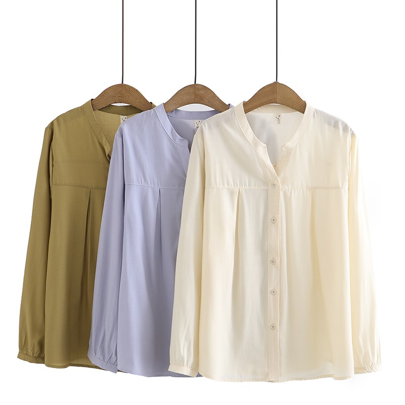 彩黛妃2025春夏新款女式韩版纯色长袖显瘦潮流大码休闲雪纺衬衫