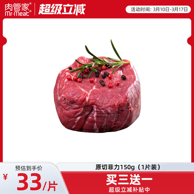 买三送一菲力牛排原切牛排150g牛排儿童厚切惠灵顿牛排单片牛扒
