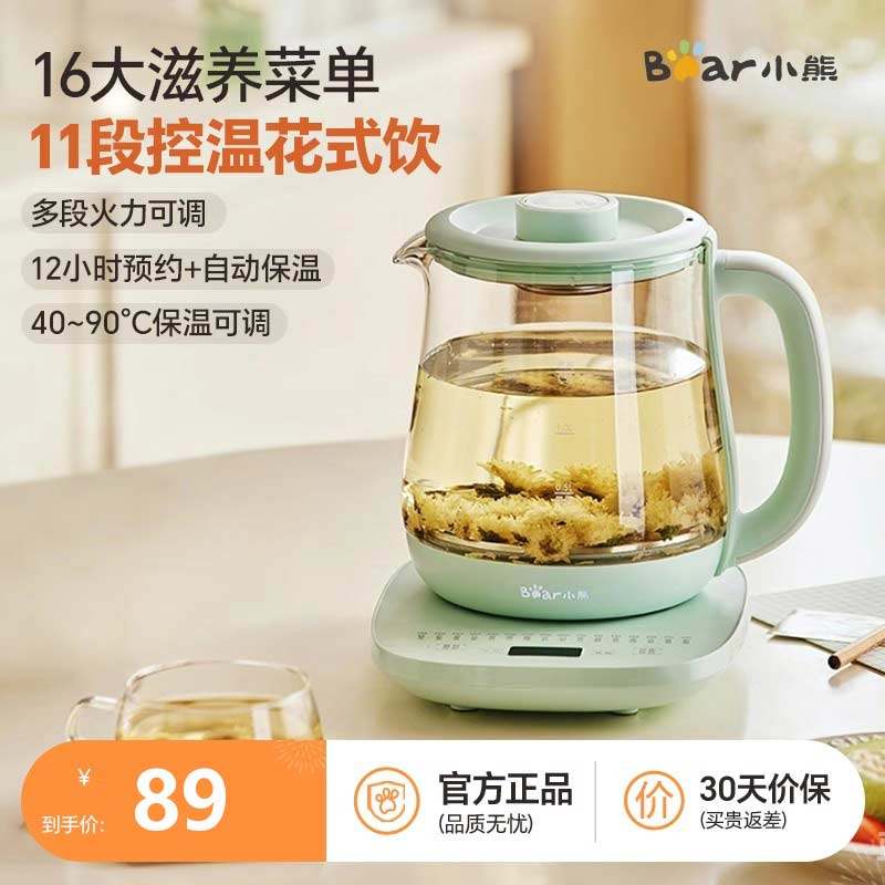 小熊养生壶玻璃一体多功能花茶壶家用恒温电热水壶办公室小型1.5L
