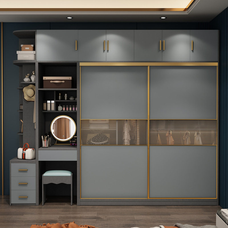 轻奢衣柜实木生态板推拉滑移门现代简约柜子家用卧室北欧整体衣橱