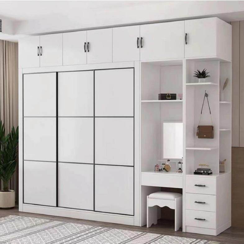 现代简约推拉门衣柜实木质滑移门烤漆整体大衣橱顶柜卧室家具定制