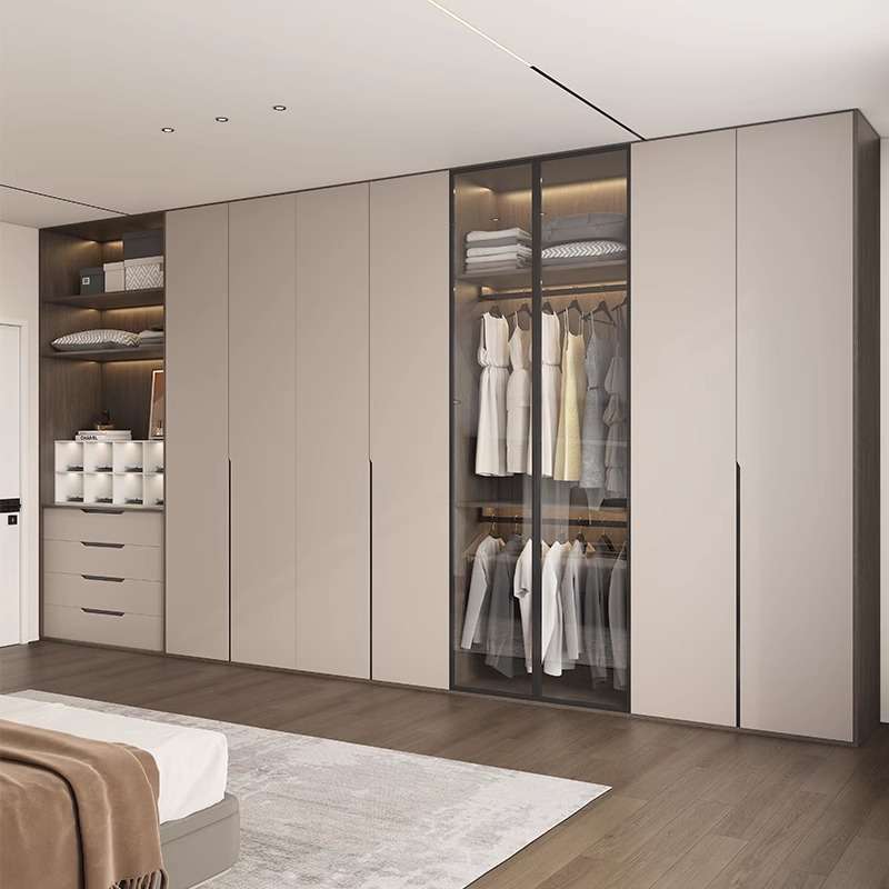 轻奢玻璃门衣柜家用卧室现代简约木质六八平开门衣帽间大衣橱整体