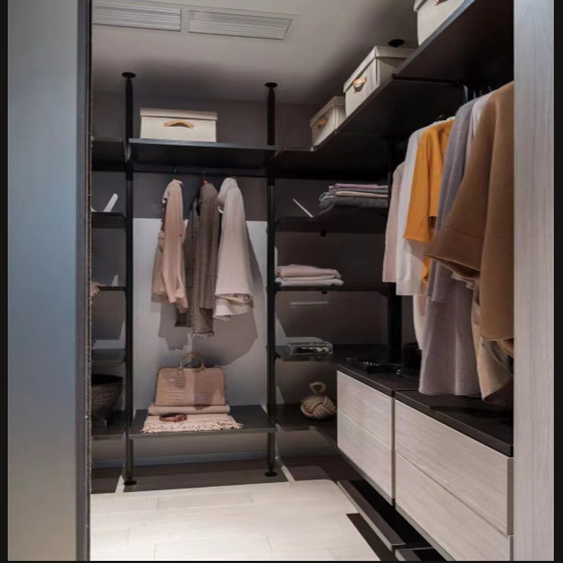 极简轻奢定制铝合金壁挂玻璃层板衣帽间架走入式现代简约整体衣柜