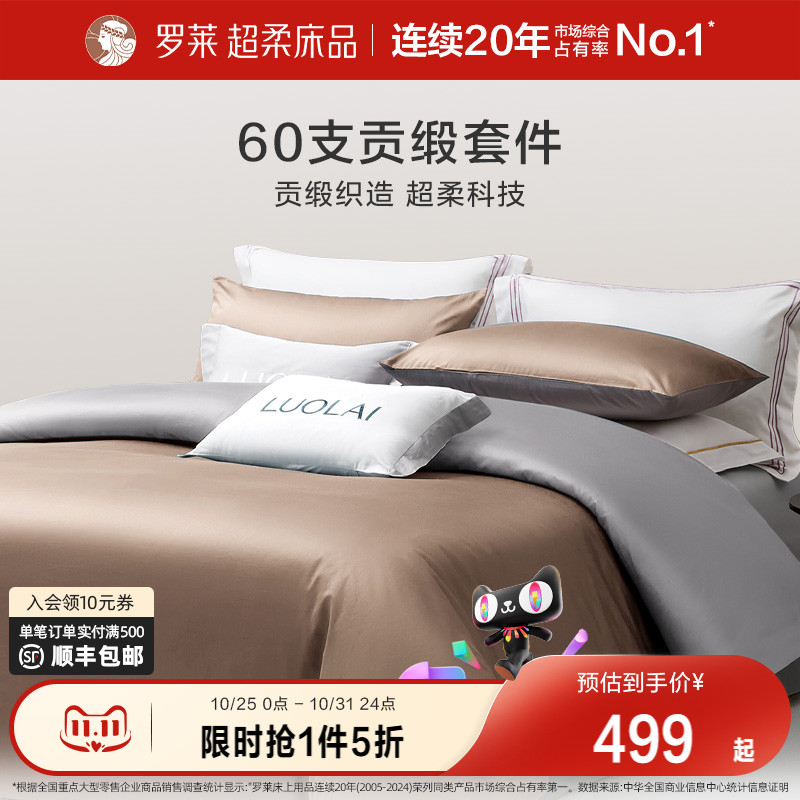 罗莱家纺60支全棉纯棉贡缎套件简约床单被套被罩四件套1.8m双人床
