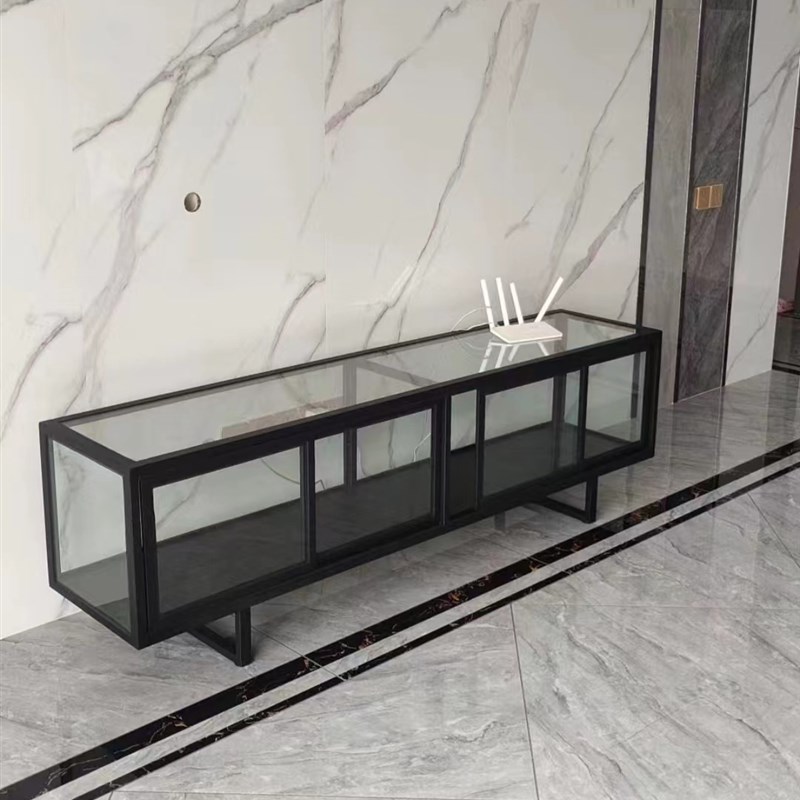 简约铁艺钢化玻璃电视柜金属展示柜透明矮柜长乐高模型手办收藏柜