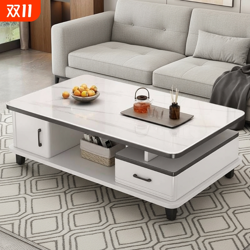 茶几客厅家用小户型钢化玻璃桌子简约现代电视柜组合方形岩板茶桌