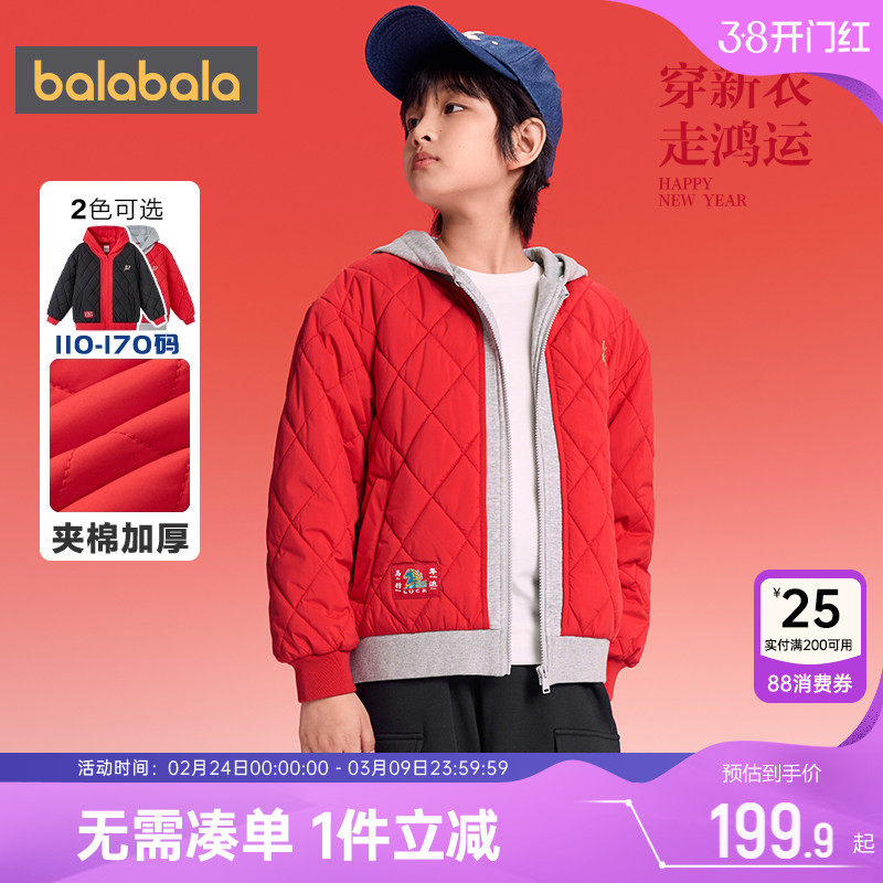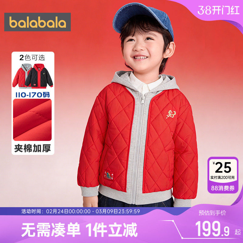 巴拉巴拉儿童棉服中大童棉衣外套秋冬款童装男童女童红色棒球服厚