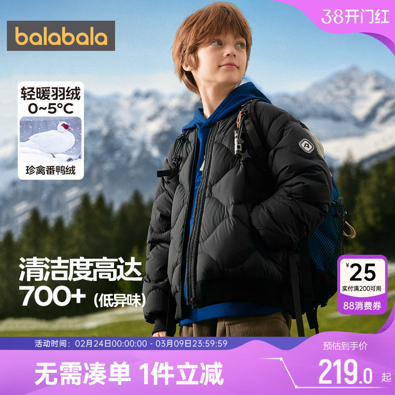 巴拉巴拉儿童羽绒服男童女童加厚外套秋冬款童装中大童棒球服宝宝