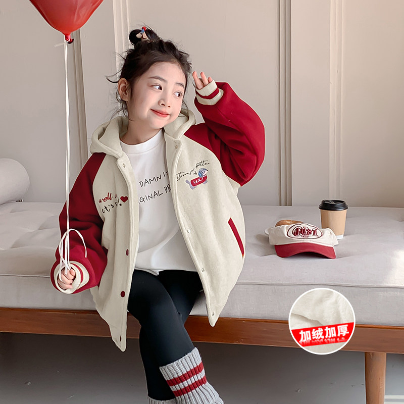 女童连帽棒球服外套秋冬款2025新款儿童冬季洋气中大童加绒夹克潮