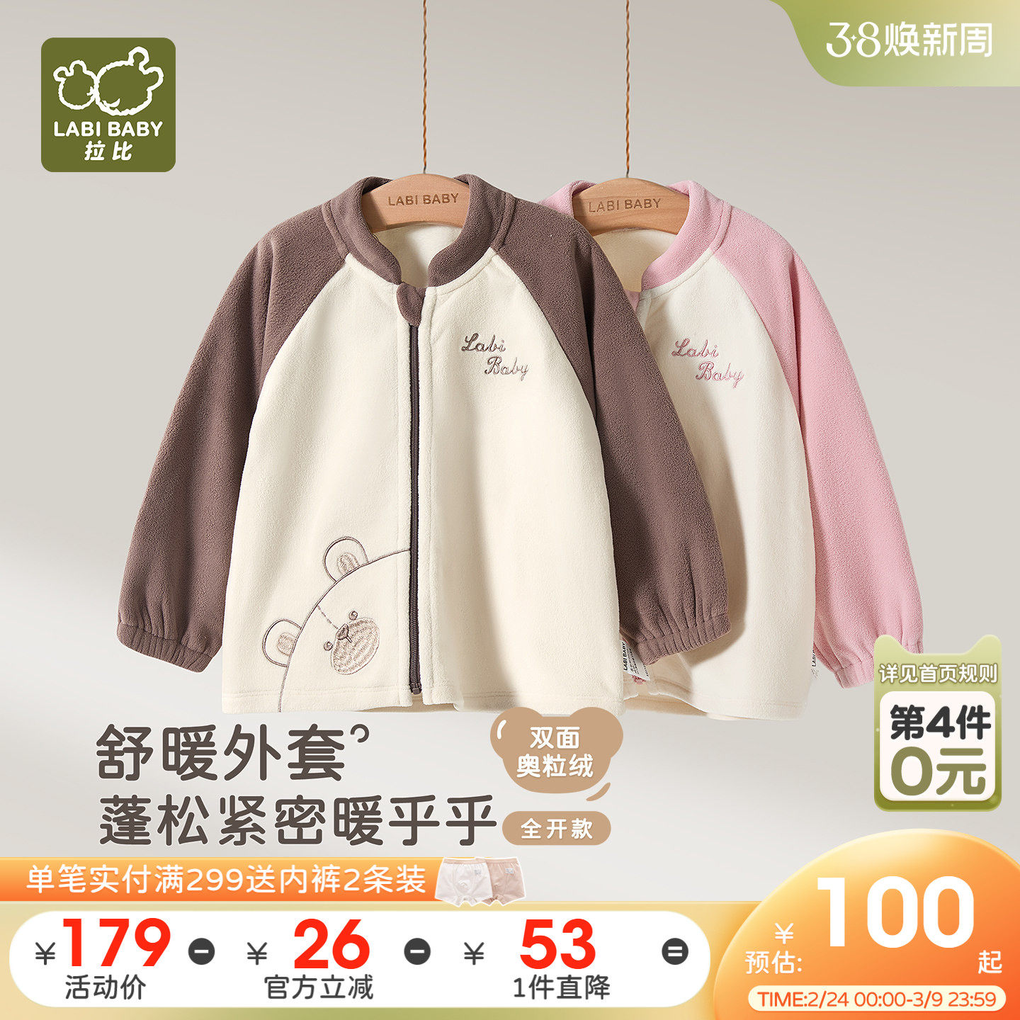宝宝棉服秋冬儿童摇粒绒拼接棉衣冬季男童冬装棒球服女童棉袄冬款