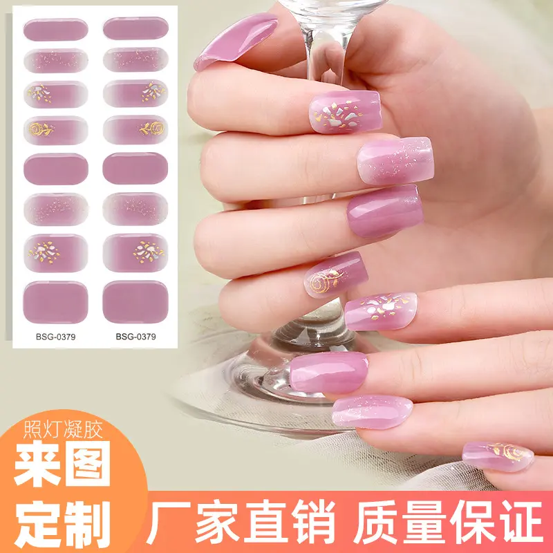跨境热销 20指甲油膜全贴 韩国UV指甲贴 防水美甲贴纸 甲油批发