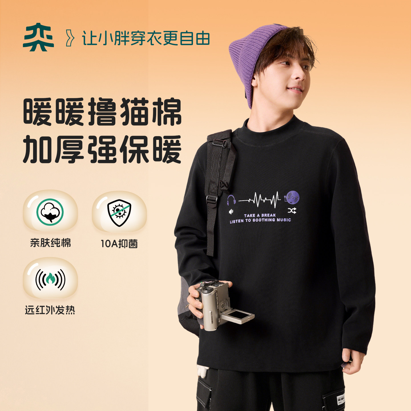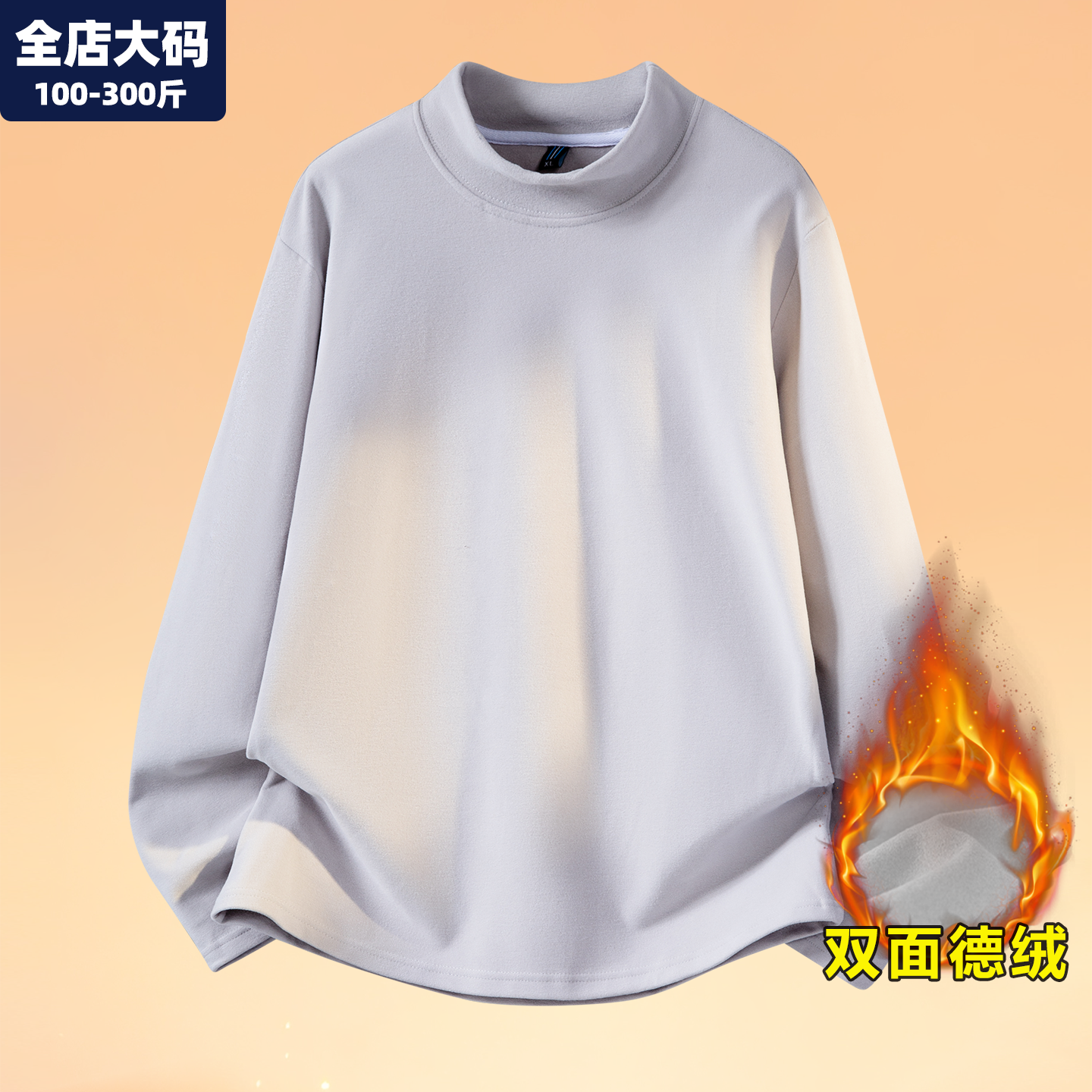 半墨德绒打底衫男半高领宽松加肥加大秋冬保暖长袖T恤打底衫基础