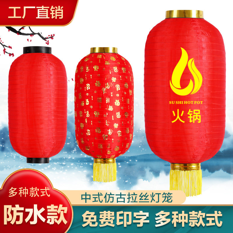 新年春节大红灯笼绸缎植绒广告印字灯笼铁口宫灯户外防水灯笼挂饰