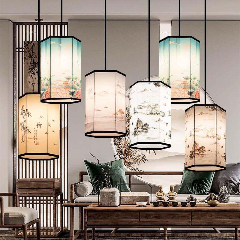 新中式吊灯古典户外防水灯笼茶楼布艺火锅店饭店餐厅走廊灯中国风