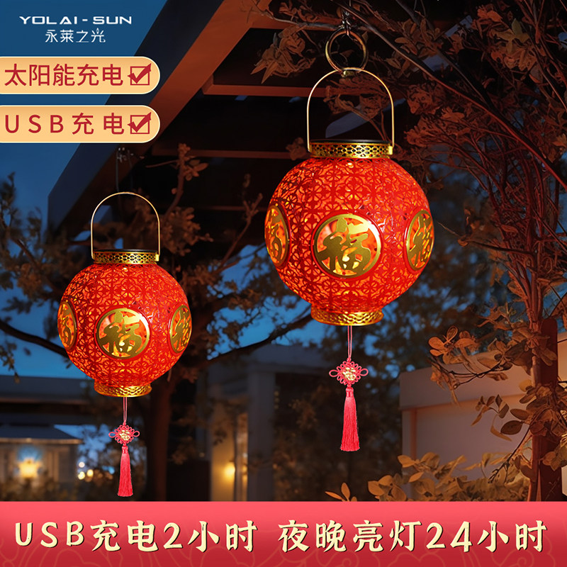 2026新款春节太阳能灯笼挂饰福字喜庆中式户外防水灯笼手工新年