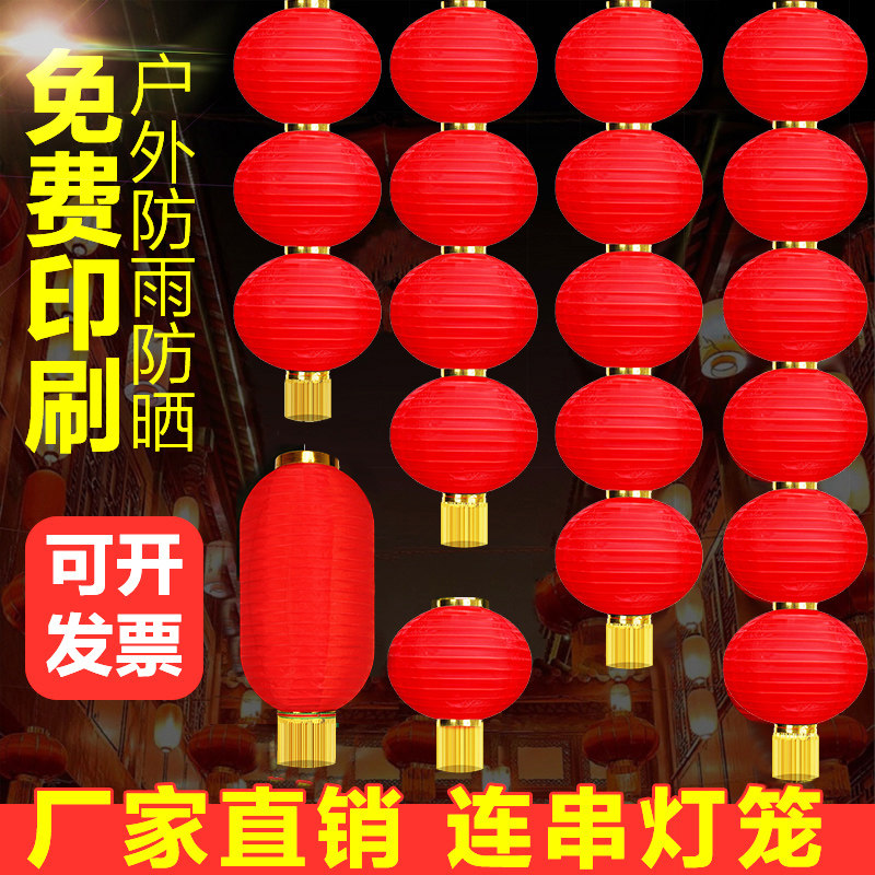 大红户外防水灯笼串绸布长圆广告定制新年折叠拉丝三四五连串灯笼