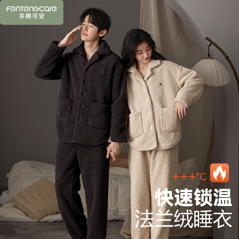 芬腾情侣睡衣秋冬季珊瑚绒抗静电套装加绒加厚男女士法兰绒家居服