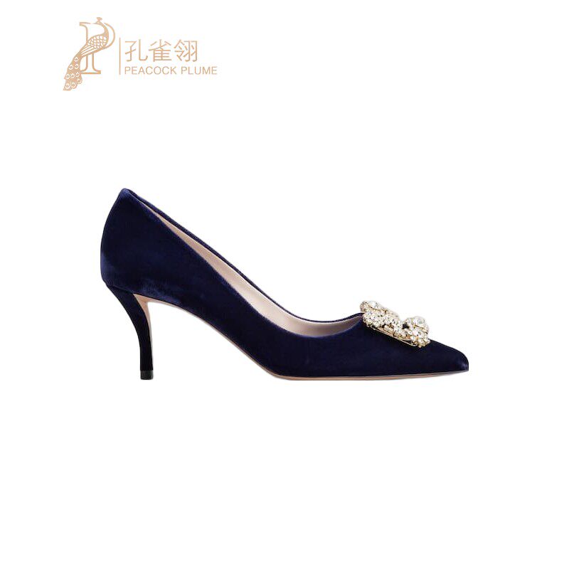 Roger Vivier女鞋天鹅绒缎布水晶花朵宝石搭扣6.5CM高跟鞋