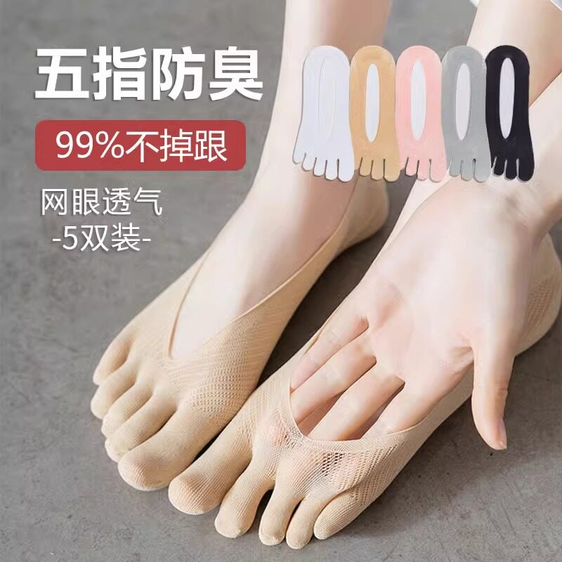 天鹅绒五指袜女夏季薄款浅口隐形高跟鞋袜夏天网眼女士船袜防滑脱