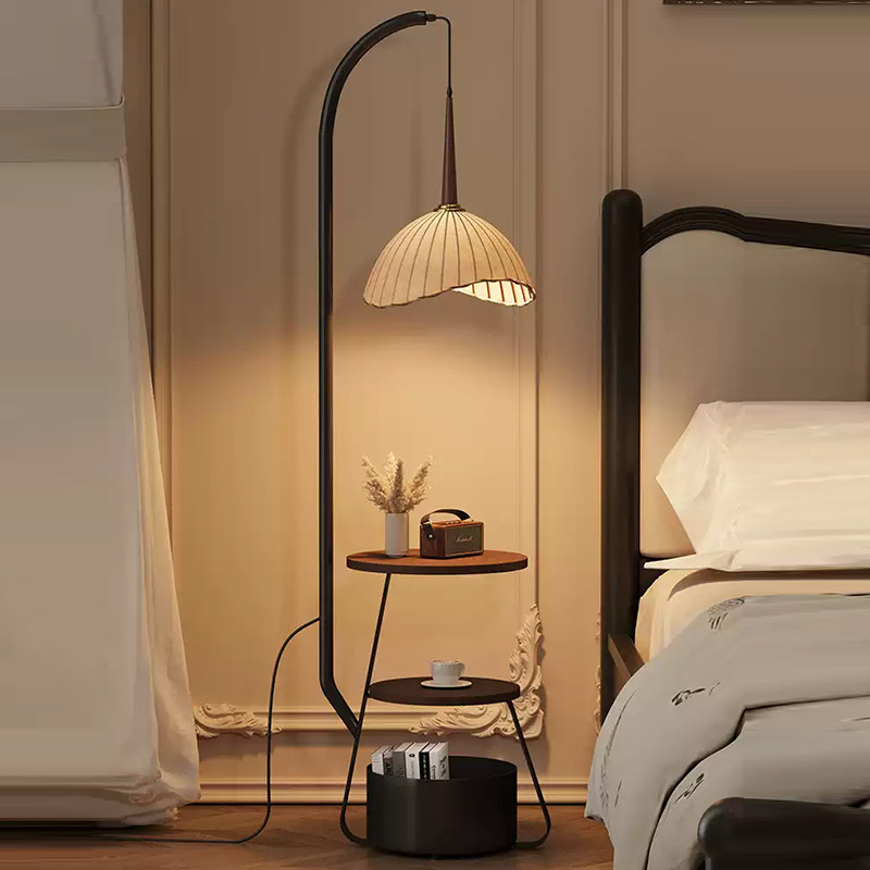高级感客厅钓鱼落地灯中古风沙发旁置物一体轻奢卧室床头柜氛围灯