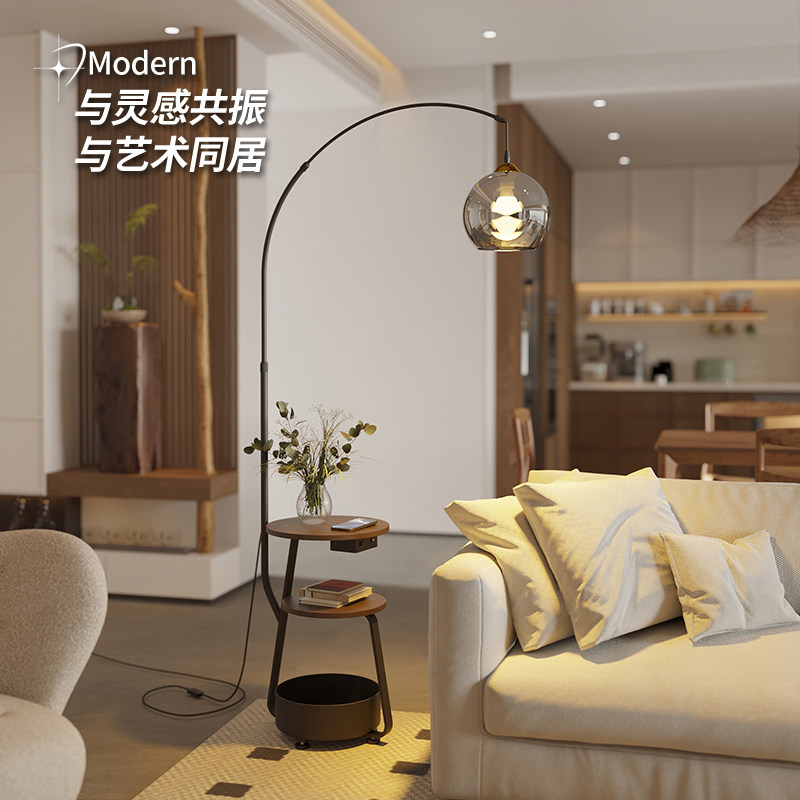 意式客厅钓鱼落地灯025新款沙发旁置物一体轻奢高级感卧室氛围灯
